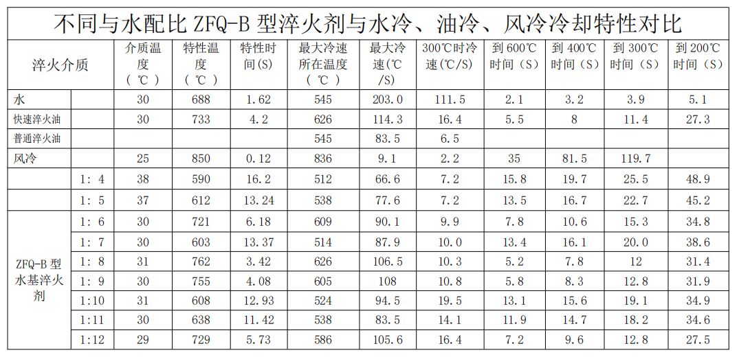 ZFQ-B型與水1:10配比時(shí)的冷卻性